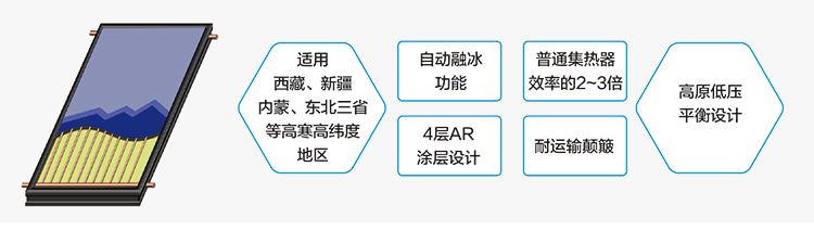 1、STC500是一種在低溫環境領域具有較高光熱轉換效率性能的集熱器 2、在環境溫度Ta=一10℃,進口溫度的Ti=70℃,即集熱器工作溫度與環境溫度的溫差為80℃,太陽輻照強度1000W/m2時輸出功率,可達518W/m2,是普通集熱器效率的2-3倍 自動融冰功能 若有積雪覆蓋集熱器,太陽升起后集熱器表面積雪自動融化
